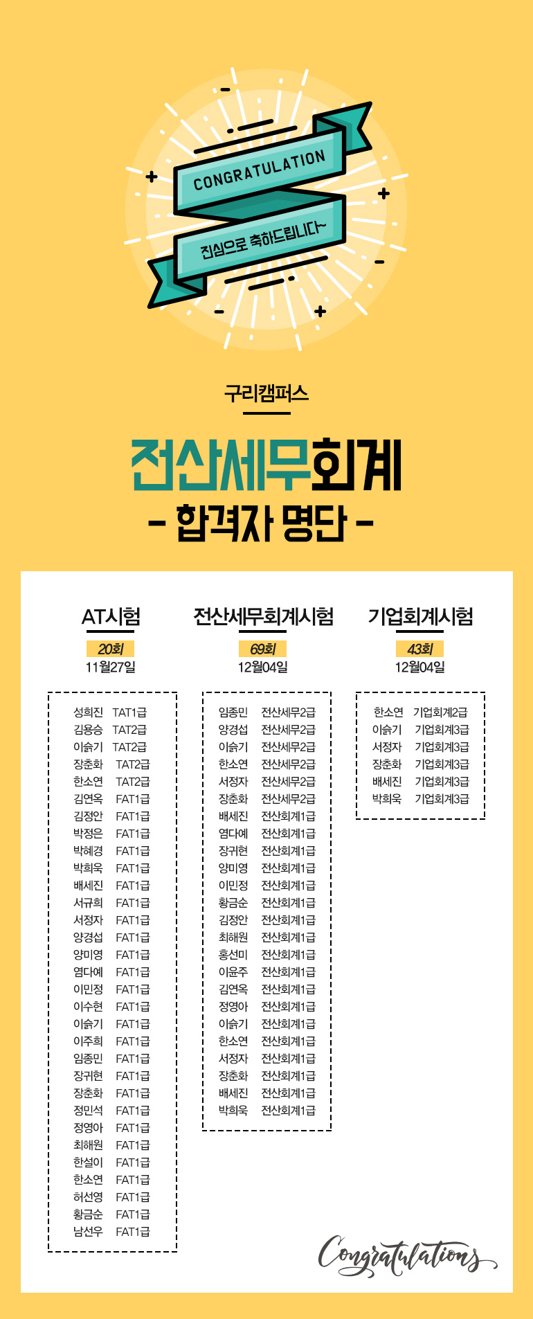 [구리]전산세무회계시험 합격자명단